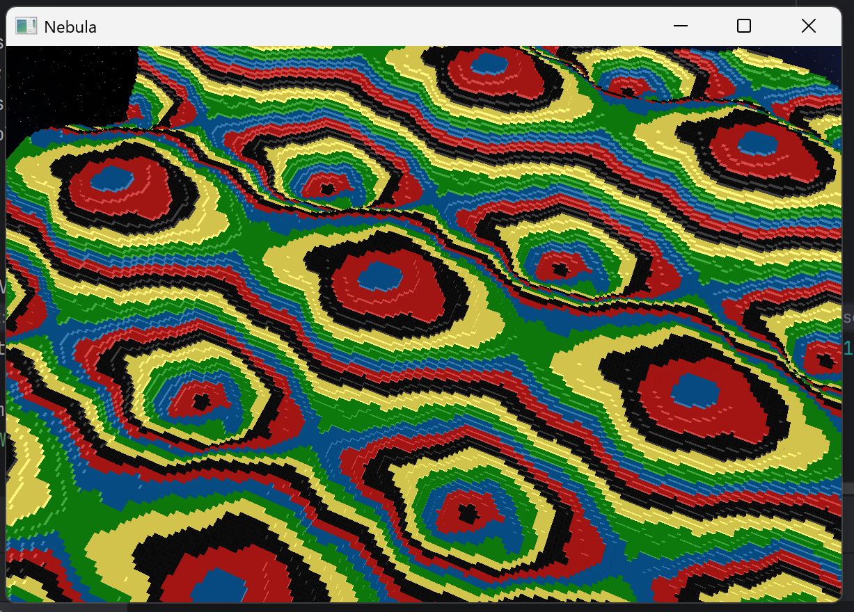 One of my first graphics projects, on the surface its a basic voxel renderer however is uses high dimension perlin noise in order to create seamless repeating terrain. The reason I did this was because when combined with a superficial curve, and a large enough repeating section you could create a convincing spherical planet using the local flatness of large spheres. I never fully finished this project, but Vanadium is an attempt to recreate it in C++.